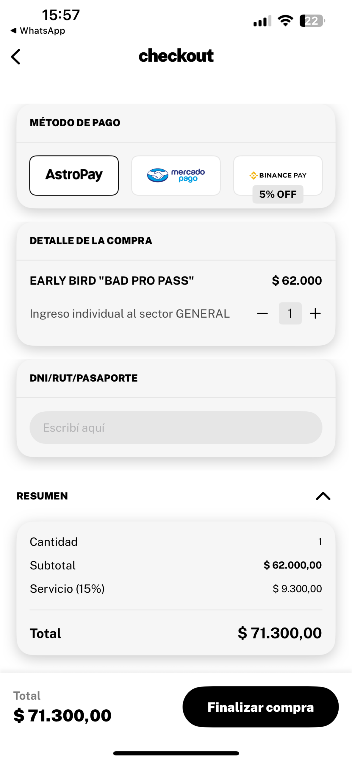 Chequeá los datos, elegí tu método de pago y clickeá en “Finalizar Compra”